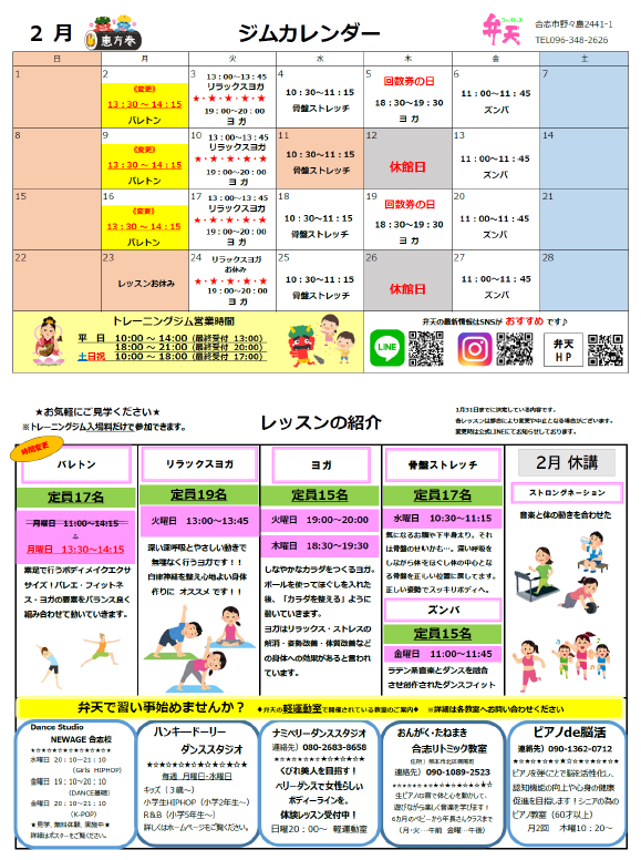 2月トレーニングジム(軽運動室)で予定しておりました『バレトン』のレッスン時間変更のご案内です。